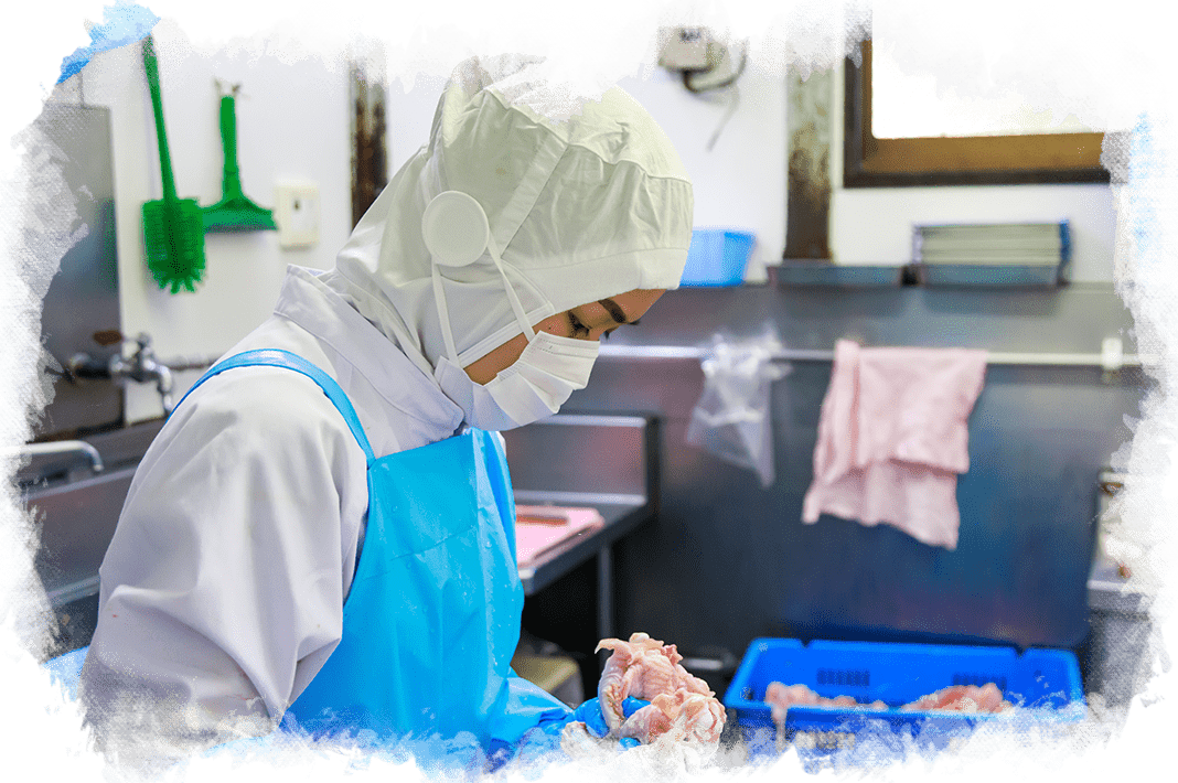 私たちは、生産〜提供まで一貫して行っている養鶏場。鶏肉の加工場も、敷地内に設置しています。